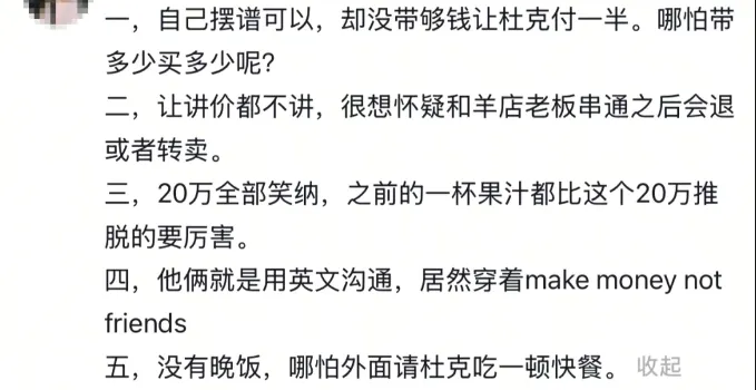 甚至有评论指出他“衣着印着‘Make Money Not Friends’(赚钱不交朋友)”的标语,仿佛他从未把帮助当作改变而只是当成了畅快消费。