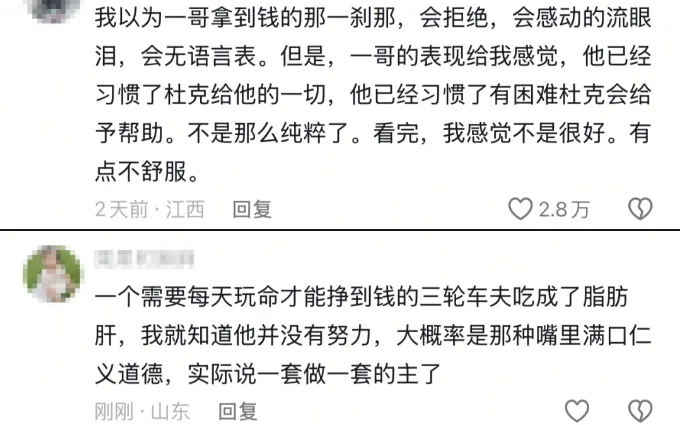 杜克和一哥的故事从温暖到争议只用了一个“20万”的分割线,它生动地告诉人们:现实往往比故事更复杂,感动比流量更脆弱。