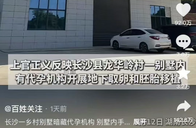 2025年5月12日,长沙警方在打拐志愿者的协助下,突击检查了一处隐秘的地下代孕窝点,据现场人员透露这处窝点位于城乡接合部的一栋不起眼建筑内,表面上没有任何异常。
