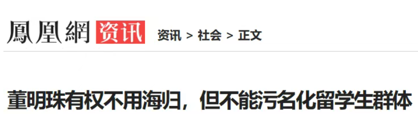 《凤凰网》也直斥董明珠不应污名化留学生群体,并强调重视本土人才与招聘海归并非对立,如此言论是对广大留学生群体的“极大冒犯”