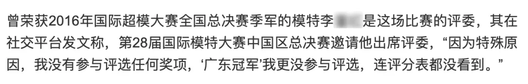 正在网友研究这些奇葩回复的时候,剧情再次反转,其中一位比赛评委突然发声:“因为特殊原因,我没有参与比赛的任何奖项评选,广东冠军我完全没参与,连评分表都没有看到。”