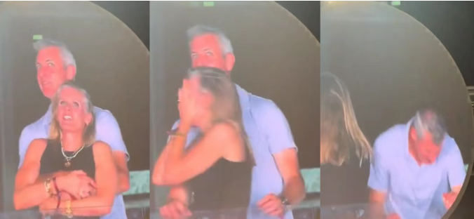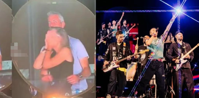 在演唱会进行到高潮时直播镜头扫过观众席,突然定格在一对男女身上,画面中的男子正揽着女子的胸部,两人依偎在一起举止亲密,神情暧昧。