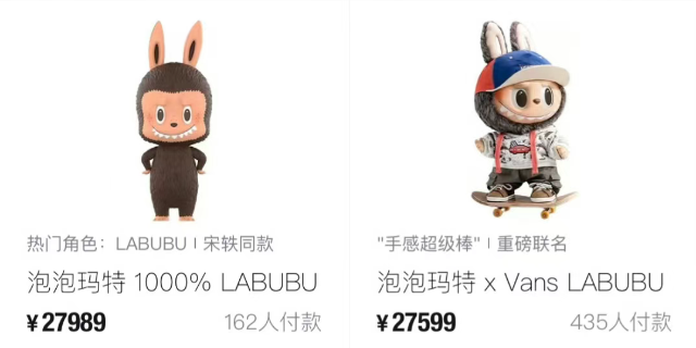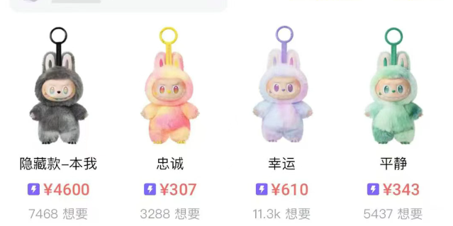 最后,还不得不提到LABUBU的投资属性:随着它的热度不断攀升,越来越多的玩家开始把LABUBU当作收藏品甚至投资品,限量款在二手市场的价格往往是原价的几倍甚至几十倍,这也吸引了不少人抱着“买了不会亏”的心态入场。