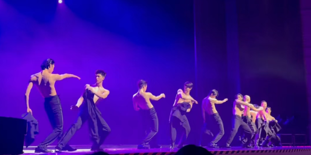 然而,让这部舞剧脱颖而出的并不是单纯的艺术创新,而是其大胆的演出形式:舞剧中加入了多位男模参与的“擦边秀”环节,这些男演员不仅拥有出色的舞技,还以雕塑般的体型和精心设计的服装(或部分暴露的装束)吸引观众目光,尤其是开场和中场的高能表演段落,男模们以流畅的舞步和充满力量的动作,搭配舞台灯光的动态效果,营造出一种既艺术化又具挑逗性的氛围。