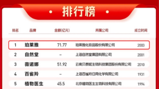 在“2024年度中国美妆品牌TOP100”榜单中,FBD以14.5亿元的营收位列第35名,虽然与榜首品牌的71.77亿元相差还较大,但相较于其他成立时间相近的品牌而言,FBD的表现已经堪称行业黑马了。